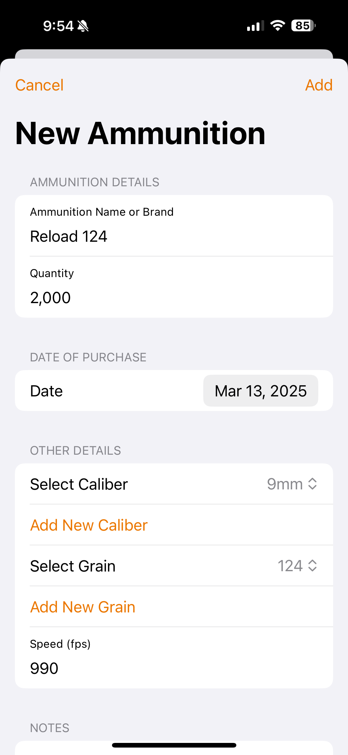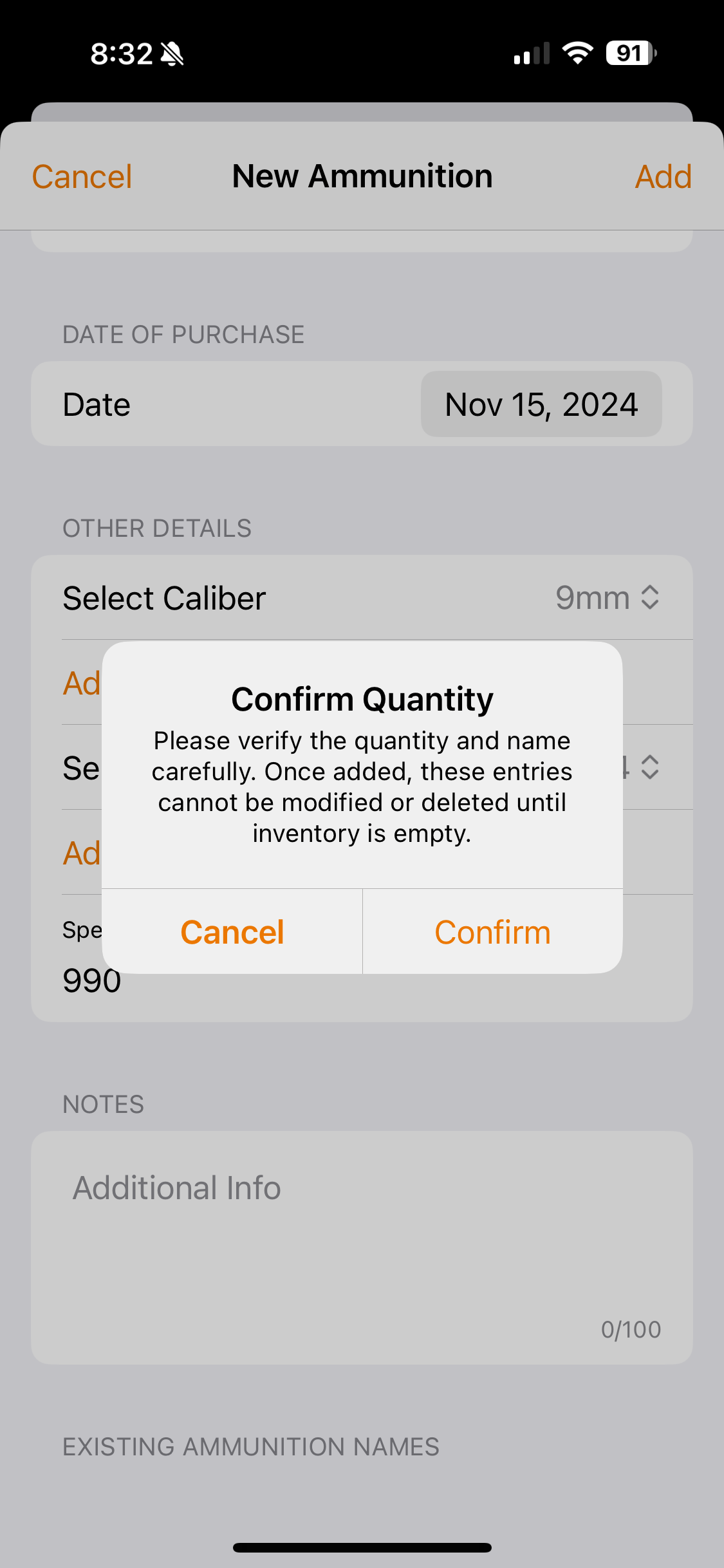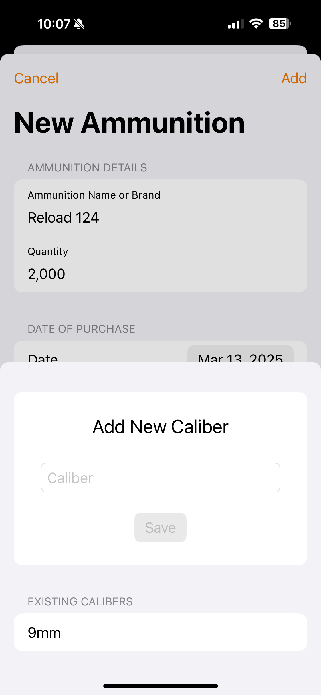 The same way you added your guns, tap on the + button to add your new ammunition.